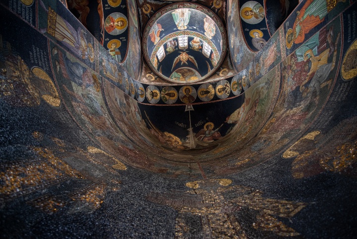 Now, let’s talk a little about Mia’s photos. I told her that my four favorites are: the bubbles in Amsterdam (well, of course as a Dutchman I say this with a smile on my face, but honestly Mia made me aware that the photo had been taken in Amsterdam, which I didn’t know yet), the columns with the lady, the beach/seascape, and the blue mosque in Abu Dabi, which reminisces Mia’s Blue Exhibit she had a few years ago at The Galleria shopping center in Belgrade. The unique perspective of the dome in Topola’s Mausoleum church also deserves a special mention here.