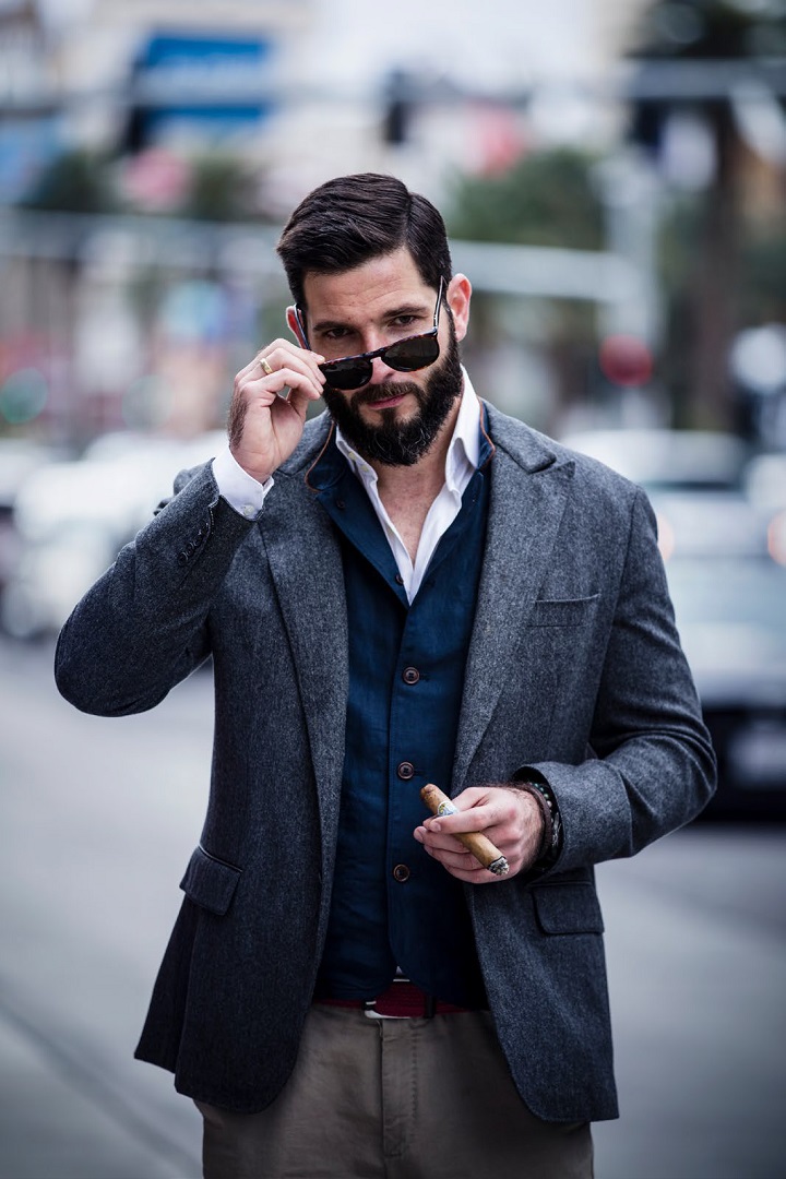 Tu je! Postoji i nije još izašao na scenu, nekako se još uvek krije. Veliki smo pomak napravili zadnjih 10-ak godina. Džepne maramice svih boja su postale normalna stvar, uz sve više “bespoke” odela. Brendovi su postale manje bitni, a potreba za nečim originalnim raste svaki dan. U mom slučaju, cigar i dandy nije uobičajeno da se nađu zajedno. S obzirom na to da je Instagram priča nastala u USA, a svi znamo da su Amerkanci malo ležerniji po pitanju garderobe, bilo je za očekivati da se izdvojim stilom. Svaki dan su ponavljali – evo ga ovaj što se stalno “skocka” i tako je nastala ideja da spojim modu i cigare (obe stvari su vezane “uživanjem” u lepom). Želeo sam da nešto što na prvi pogleda nema ništa zajedničko.