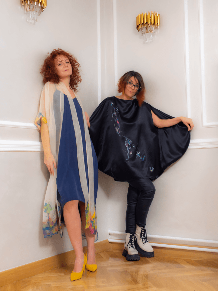 Jelena, Tatjana: Pokušaćemo da naš rad bude malo vidljiviji i dostupniji publici, kao i konzumentima. Zajednički korak, cilj ili misija, kako god to nazvali, nam je da osvestimo žene da one ne kupuju, ne nose samo komad svile, već malo unikatno umetničko delo. I da to umetničko delo odšeta po mogućstvu u neki drugi deo sveta, upozna druge kulture.