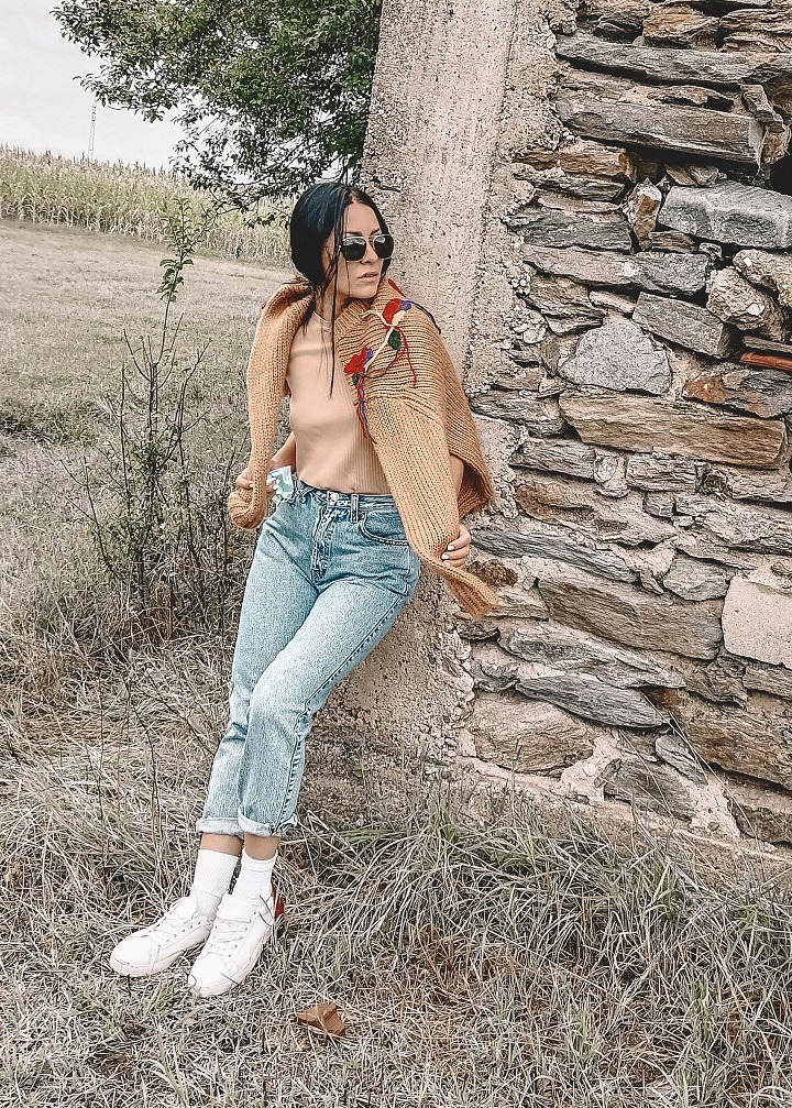 Jeans dubokog struka u kombinaciji sa vintage džemperom. Neka džemperi dominiraju ove jeseni. Neobični, zemljanih boja, sa raznim prinotivima.