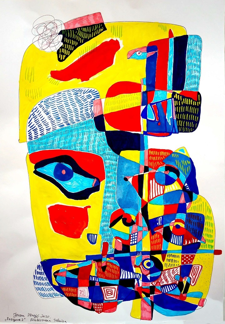 S obzirom na situaciju zbog epidemije Korone, bila sam jako prijatno iznenađena posećenošću. Na otvaranju sam videla, prvi put posle izolacije, mnoge drage ljude i sigurna sam da ću ovu izložbu nositi u sećanju kao jednu od najdražih. Izložila sam 7 slika, od kojih su 6 ulje na platnu, a jedna je kombinovana tehnika. Takođe i veći broj crteža flomasterom, akvarel, gvaš, tempera, kombinovana tehnika.