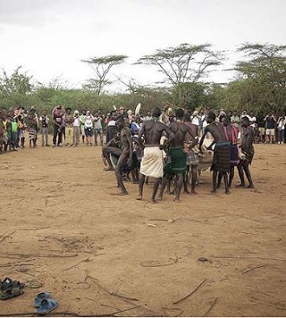 Muškaraci koji su nedavno završili proces inicijacije uzimaju grane i iz sve snage, do krvi, bičuju po leđima žene koje ni glasa ne puštaju. To je njihov način da pokažu ljubav, izdržljivost, odanost i daju podršku iniciranima. Neverovatno je videti devojke koje mole i tuku se da budu prve i što više bičevane. Dečak mora nekoliko puta trčati napred-natrag po leđima bikova ili kastriranih volova, a ismejava se ako ne uspe. Nakon toga, odlazi šest meseci u divljinu da preživljava sam. Tokom tog perioda, otac mu traži ženu sa kojom će stupiti u brak po povratku.