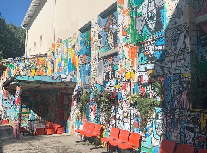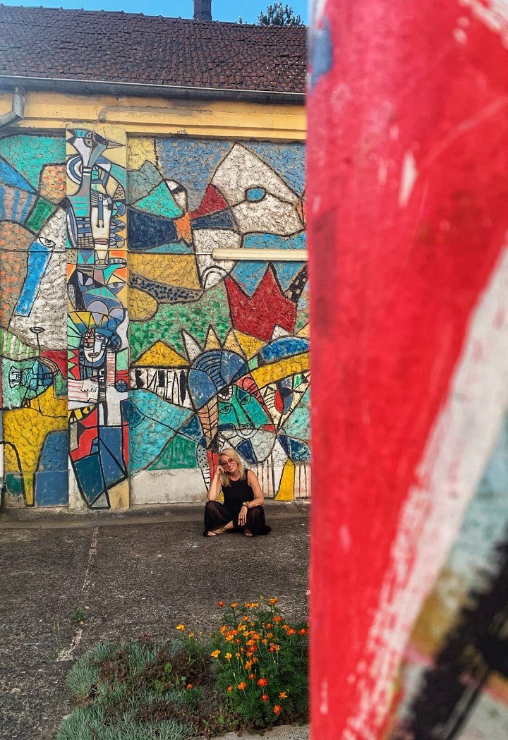 Posetili smo njegov atelje u Grdelici, dom kulture koji je oslikao. Šetali se varošicom i ispijali kafu kao na nekom od trgova u Parizu, Rimu, Madridu. Grdelica je gradsko naselje grada Leskovca u Jablaničkom okrugu. Varoš je dobila ime po utvrđenom naselju Kale koje se zvalo Grad Jelica. Od ovog naziva ime je najpre skraćeno u Gradelica da bi na kraju postalo Grdelica. Ostaci utvrđenog naselja vidljivi su i danas. Varoš leži na ulazu u Grdeličku klisuru, sa njene severne strane, na 225 m nadmorske visine. Nalazi se na glavnoj moravsko-vardarskoj arteriji, pa pored nje prolaze železnička pruga i auto-put. Na raskrsnici između Leskovca, Predejana i Vlasotinca, Grdelica ponosno spaja različite tačke.