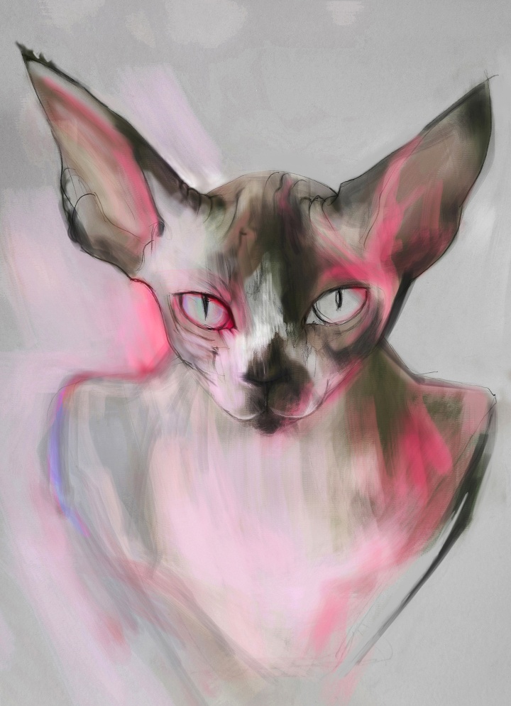 Tako je moj Peggy, kao i drugi primerci ove rase, postao moja neiscrpna inspiracija. Sa kratkom, maltene nevidljivom dlakom, izražene muskulature, sa kožnim naborima, velikim očima i ušima, repom poput miša – postao je pravi izazov za crtanje, kao i kreiranje digitalnih slika.