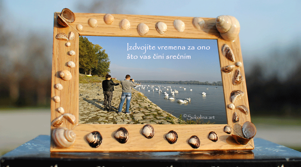 Klijenti koji poštuju značaj Prirode (vode, sunca, peska, školjki i ptica), ručnog rada i unikata, prepuštaju mi poverenje kada za njih kreiram originalne poklone – foto ramove sa dunavskim školjkama. Ovi ramovi su posebno zanimljivi kupcima koji žele da daruju uspomenu iz Zemuna, Beograda i Srbije. Više o ramovima i porudžbinama možete saznati na fb.com/sokolina.art i instagramu @sokolina.art.