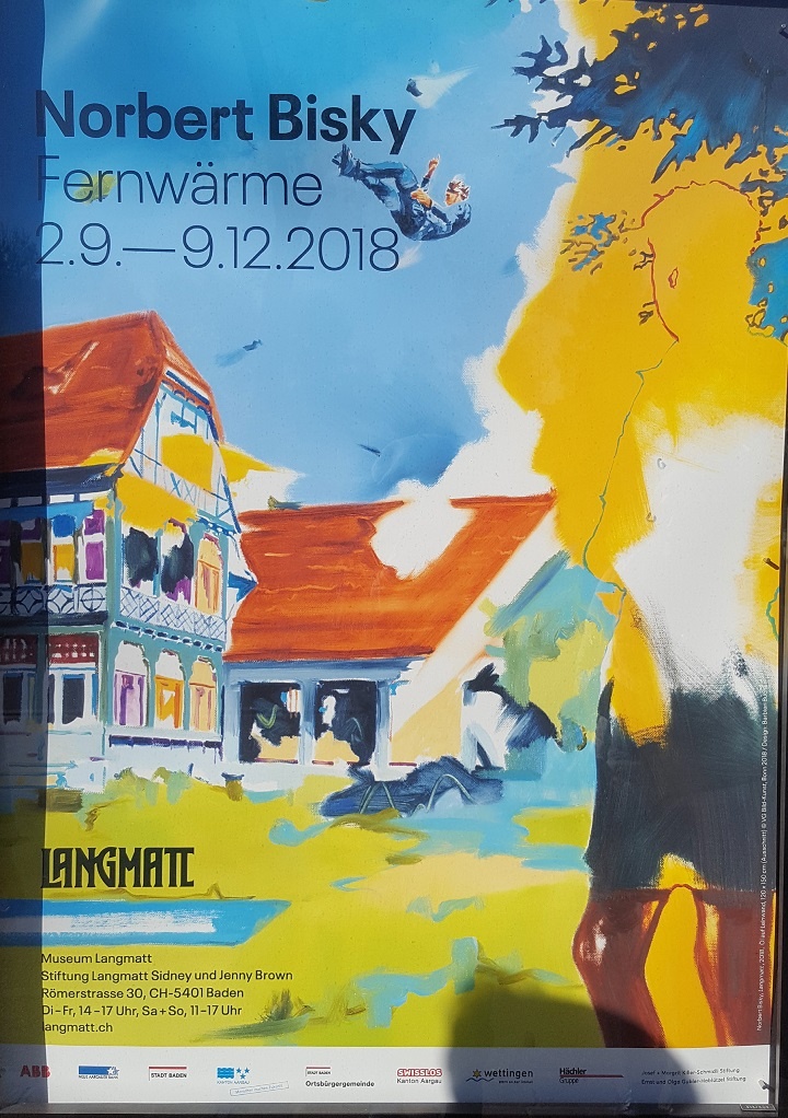 Norbert Bisky je savremeni slikar, rođen u Lajpcigu, živi i radi u Berlinu, osoben po svojim brutalnim i apokaliptičkim temama, često na velikim platnima, ni malo apstraktnog prikaza, koji time ni na koji način ne suzbija subjektivan doživljaj posmatrača. Kako se sam izjašnjava, beskompromisno koristi samo najbolje, najskuplje, najblistavije i najlepše boje. Nijanse žute, isijavajuća žuta zlatnih tonova i snažno upadljivo plava pokreću svu silinu rušilačkog, odnosećeg. Postavka u muzeju Langmatt ovog slikara, nazvana „Zagrevanje“, drži posmatrača još dugo nakon izlaska iz sale u miljeu viđenog i doživljenog, užasa uhvaćenog u detalju i bezbrižne misli na obali iza koje sledi krvavi trag. Želja da se ponovo susretnete sa delima ovog slikara ostaje sveprisutna i duboka.