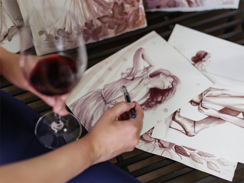 Prošlog leta sam zajedno sa suprugom i prijateljima bila na divnom putovanju po Hercegovini. Kako je ova regija bogata vinima, mi smo ih probali, uparivali sa divnom hranom i zaista uživali. Tada sam se setila da postoji stara, pomalo zaboravljena tehnika slikanja – vinorel, slikanje vinom. Nakon povratka sa puta, počela sam da slikam vinom.