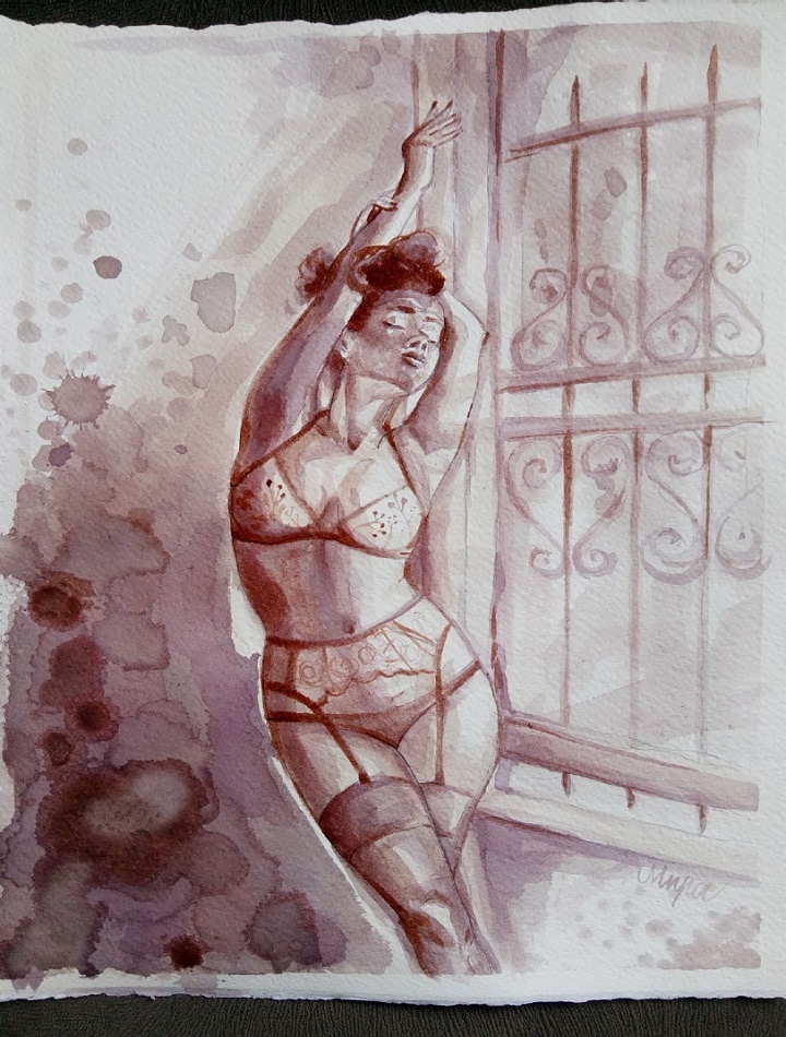 CRVENA BOJA UVEK NAS INSPIRIŠE NA STRAST I LJUBAV. TVOJA TEMA SU AKTOVI ŽENA NA DIVAN, ESTETSKI NAČIN. KAO MAJSTOR VINORELA, ŠTA TE JE INSPIRISALO DA SE VRATIŠ OVOJ STAROJ TEHNICI, KOJA JE NASTALA JOŠ U VREME RENESANSE?
