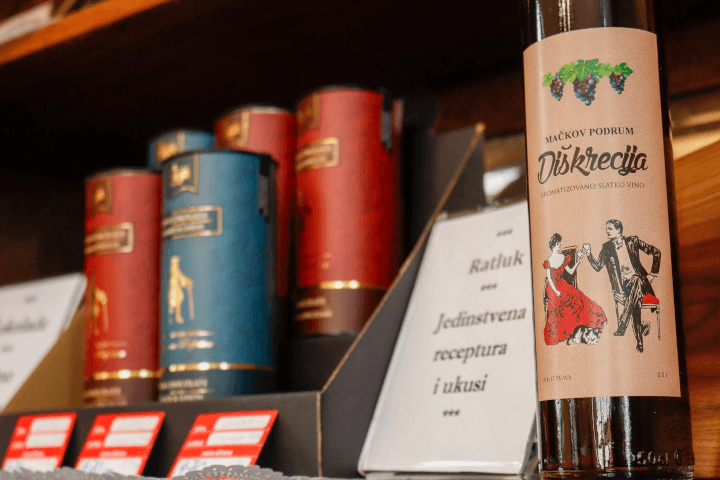 Vinarija Mačkov podrum ima veliki asortiman proizvoda i ovo je jedino mesto gde se mogu naći baš sve naše etikete. Pored grožđa i vina, na Fruškoj gori se gaji još puno drugih kultura i pravi mnogo sjajnih proizvoda. Izdvojila bih sjajne rakije od voća koje raste na Fruškoj gori. Potom poslastice, sve vrhunskog kvaliteta – džemovi, čokolade, ratluk. Uskoro ćemo imati i delikatese poput sireva i mesnih prerađevina. I autentične suvenire, na primer veoma originalne drvene daske neobičnih oblika i ukrasa. Takođe imamo i vrhunske vinske asesoare, vinske čaše, otvarače i slično. Profesionalne otvarače za vino smo sami uvezli iz Italije, jer su za nas isključivo oni bili zadovoljavajućeg kvaliteta.