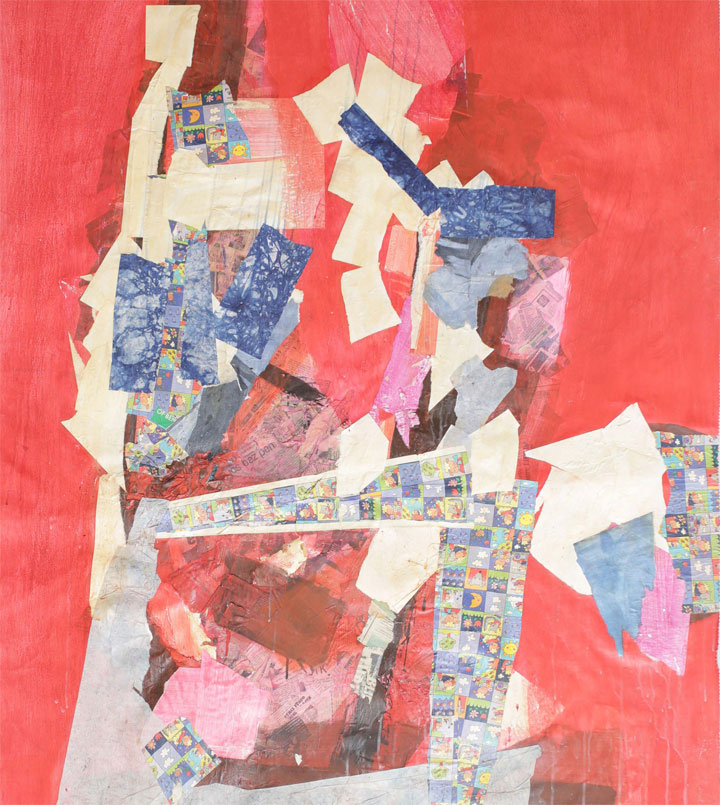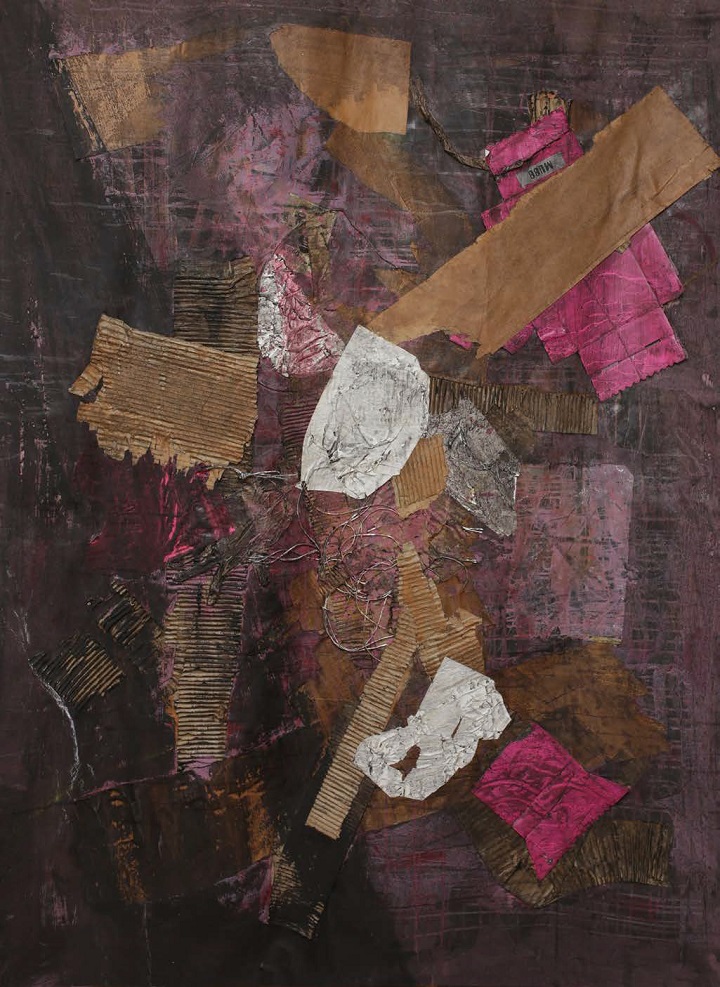 NIJE SAMO INDUSTRIJSKA AMBALAŽA PRISUTNA TO­KOM STVARANJA, VEĆ PRIBEGAVAŠ I PRIRODNOM TOKU SUŠENJA BILJAKA KOJE POTOM INTEGRIŠEŠ U SLIKU. DOSTA MITSKOG I TRADICIONALNOG IMA U TVOM RADU. KORISTIŠ I PRIRODNI VOSAK, CVEĆE, IGRAŠ SE NA SVOM PLATNU, OD ZEMLJE KA NEBU.