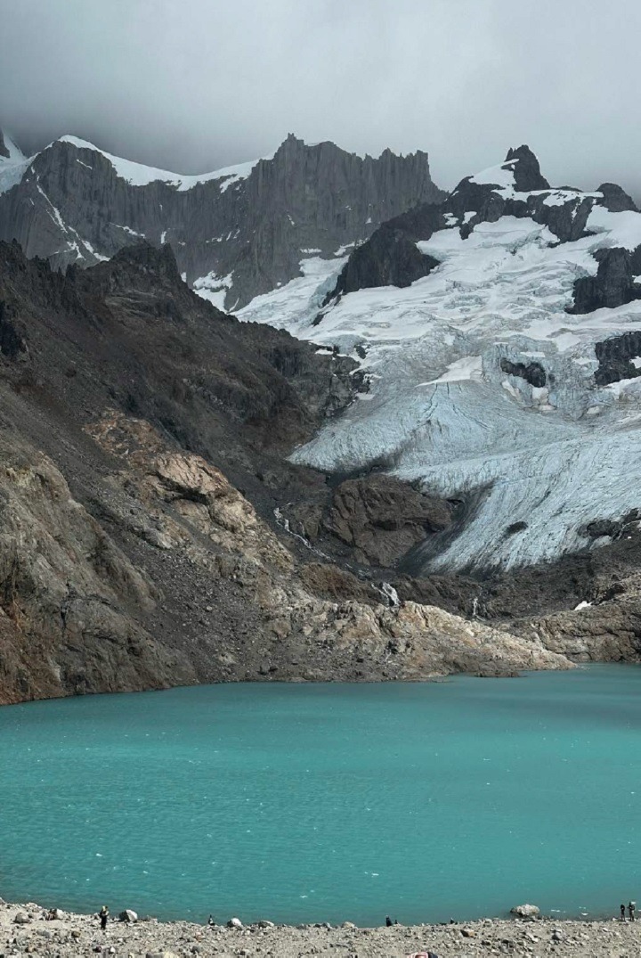 Tišina u Patagoniji je svuda – zaboravili smo na potpuno odsustvo zvukova, posebno u gradovima. Tišina je modernom čoveku postala neprijatna, a u Patagoniji me opčinila. Putovali smo iz El Calafatea do El Chaltena narednog dana kada sam sebi potvrdila da je najlepši način da doživiš ovo mesto zapravo da putuješ ćutke. Stižemo do nacionalnog parka Los Glaciares i jezera Laguna Torre. Očekivali smo da u daljini ugledamo vrhove Fitz Roya, ali on se ćudljivo ne da, sakriven u oblacima i magli prepušta nas, kao i mnoge pre nas, mašti. Na jezeru ćemo jedva izdržati desetak minuta zbog olujnog vetra, ali nam je ponuđena i utešna nagrada – na njegovoj površini zatičemo formacije leda koje svetlucaju i izgledaju kao džinovski dijamanti. Novi dan za nova čuda.
