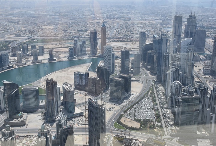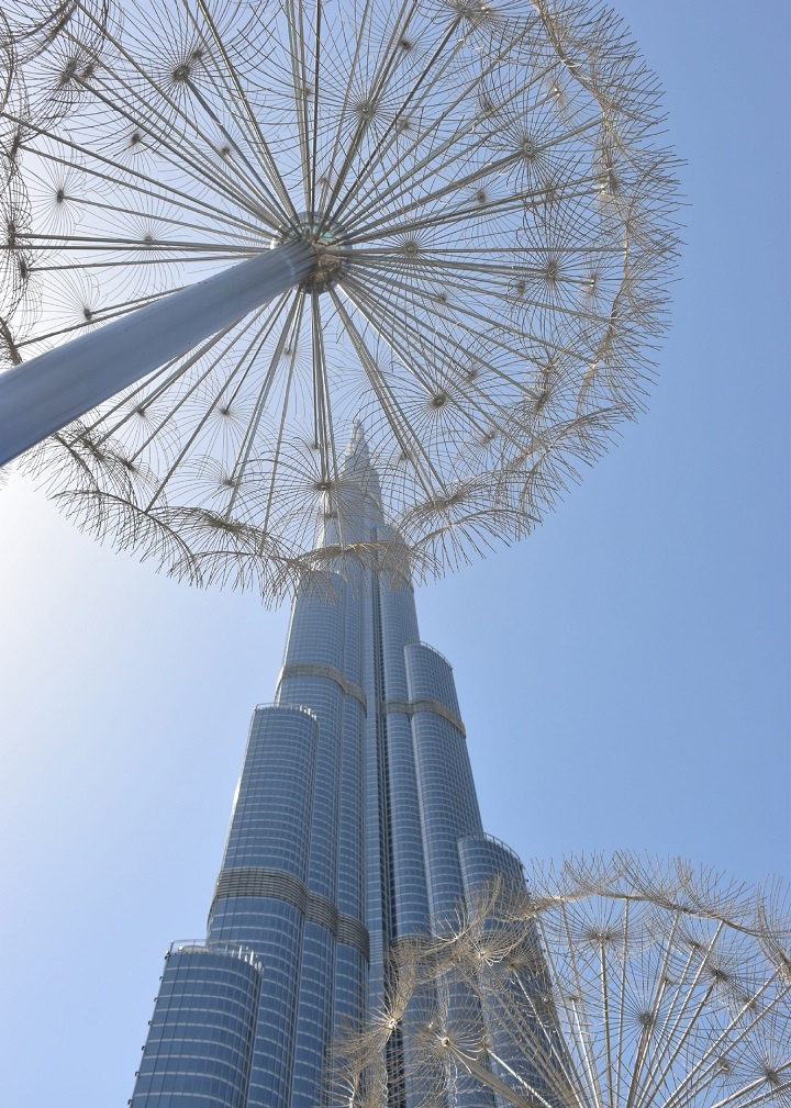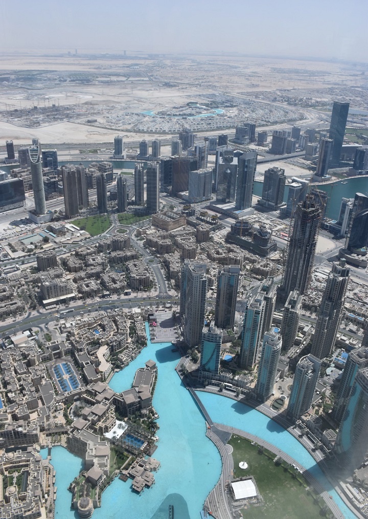 Kada se liftom popnete na 125 sprat shvatite da nema dalje nebo iznad vas, pustinja i grad koji se gradi ispod vas. Taj sjajni kontrast pustinje i građevina doprinsi nestvarnosti i lepoti Dubajia. U zgradi je smešteno 30.000 stanova, 9 hotela, trgovinski centar, nekoliko bazena…