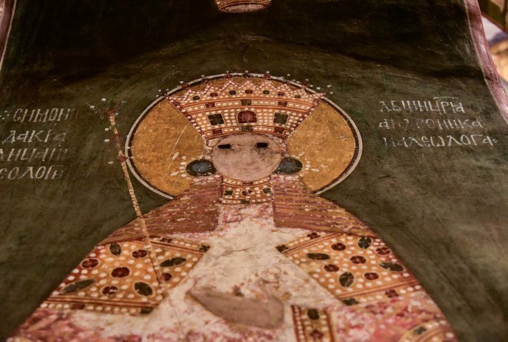 Na ulazu u crkvu se nalaze, jedan nasuprot drugom, portreti ktitora kralja Milutina i njegove žene Simonide.