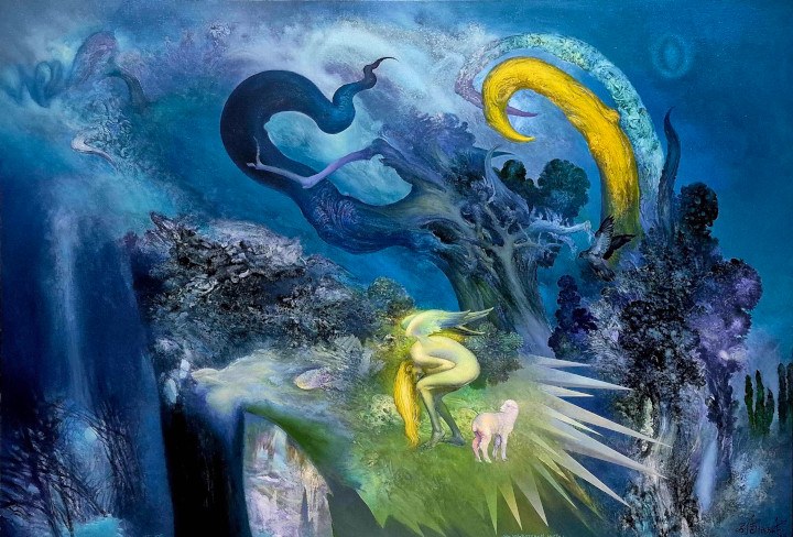 Volim da kažem da su moje slike koloristički i energetski portali kroz koje se ulazi i gleda u onostrano, izmaštano, u fantazmagorične prizore i bajkovite predele „onog tamo“ i možda odatle potiče to uverenje publike da mi slike nisu sa „ovoga“, već su od „onoga“ sveta, iz prostranstva one začudne galaksije u kojoj me je anđeo dotakao krilom.