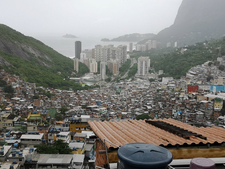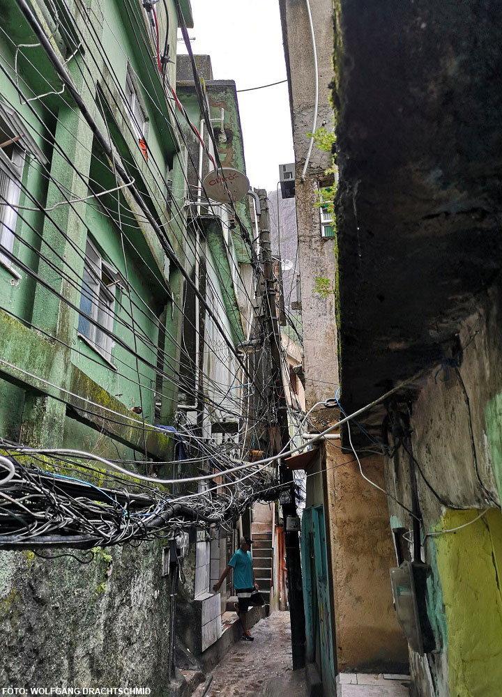 U Riju već dva dana lije kiša “kao iz kabla” i osećam se sve više kao u Parizu ili Londonu u najboljim danima. Užasno me to iritira. Koji sam ja maler! Pritom, vrlo mi je toplo, pa me osećaj neprestano vara. Laže li me i sam Rio, jer imam za njega u “šteku” još samo tri dana! Da li me je i on sam nezvanično već opljačkao?!? Hmmm, ni slutio nisam da će mi ovaj dan biti toliko dobar gde ću ja njemu ipak ukrasti još jednu kap života. Kako silazim iz autobusa, tako navlačim belu kabanicu, uzimam telefon i kao po običaju ovde ga stavljam u džep koji “hermetički zatvaram”. Obavezno moram da ga osetim, da me žulja, kao i sitan novac za taj dan. Tako je najbezbednije. Skidam slušalice, jer i njih stavljam negde na sigurno, dok gledam sve nagomilanije kablove na visokim banderama kako paraju natmureno sivo nebo. Stajem, zapažam patike okačene na nekom od kablova. Šta li je sada ovo? Modni hit favele u koju još nisam kročio? Ubrzo saznajem da se oplakuje čovek iz ganga kojeg su nedavno ubili. To je ovde potpuno normalno. Samo jedan od načina kako se vrši pomen preminulom. Kolorit ljudi potpuno je drugačiji nego na relativno bezbednim plažama Kopakabane, Ipaneme i Leblona. Sjedinjen sa atlantskim vazduhom, lepljivim sopstvenim znojem, smradom iz kanalizacija i pokvarenom hranom u blizini, pravi ocvalu rapsodiju teških mirisa koji su se uveliko venčali sa mojim nozdrvama. Ceo ambijent već uveliko liči na pakao. Bar je sve vrlo autentično. Lica istetoviranih, zadriglih, opasnih očiju sada su svuda oko mene. Ljudi me začuđeno gledaju, dede i babe. Deca, klošari, beskućnici, lokalni prodavci, svi okupljeni na jednom mestu nalik pijaci. Ovde nema slučajnih prolaznika, a kamoli turista. Čak su i specijalci na motorima pristigli. Lokalni kriminalci preobučeni u “ljude od pravde” na samom ulazu prave red i preusmeravaju nas dalje. Liče na loše kamuflirane stjuarde sa fudbalskih utakmica. Malo su tamniji i naoružaniji. Deluju vrlo istrošeno, mnogo starije od godina kojih nose i pomalo krvoločnije. Bulje u mene. Gledam i ja njih, mada ne buljim. Svi već znaju ko je stigao. Na čelu mi piše. Upravo je došao još jedan gringo! Šta li će on ovde, pa zar ne pripada spoljnom svetu?! Kao da im čitam misli, a tek oni meni. Znatiželjni pogledi me sustižu dok se penjem i prolazim kroz katakombe obasute žicom. Vidim, stariji ljudi polupripiti ili nadrogirani nešto dobacuju. Hoće da priđu, a neki se smeškaju i sebi u brk. Mrmljaju na portugalskom, koji ionako ne razumem. Lokalni vodič ih odvraća. Slušaju ga sa mukom, ali vraćaju se. Povinuju mu se teška srca, ali ipak odstupaju od nas. Ima veliki kridibilitet, vidi se na prvu ili je danas samo fantom sreće. Onako mršav, vižljast, sofisticiran, sa cvikerima, deluje kao pravi “IT boy”. Seje potpuni kontrast i apsolutno odudara od svih, kao i od mene, potpunog stranca ovde. Na terenu za sada sve radi kao sat. To je najvažnije. Najbitnije je ovih prvih par minuta, bar dok se ne priviknemo. Ja na njih i oni na mene. Prvi stepen opasnosti, privikavanja ili socijalizacije je uspeo. Osećam mali nemir koji podseća na strah više protkan neizvesnošću. Idemo dalje. Penjem se uz jezivo strme i debele kamene stepenice. Prolazim kroz prostor nalik otvorenom, ogromnom šahtu, a mulj i voda mi prodiru u već mokre, iscepane duboke starke. Nastavljam dalje. Tek sada sam napokon kročio u favelu. Stigao sam zvanično u Rosinju! Ulazim u sivu fazu jedne nezavršene kuće i spuštam se stepenicama na dole. Polako i sigurno sve više nas guta lavirint nepreglednog kaskadnog naselja u kojem gubim orijentaciju. Grupišemo se po propisu i nalogu vodiča. Krećemo zvanično na turu. Užasno je strmo i klizavo. Opominje nas da striktno hodamo uz liniju i obod niskih kuća ne bi li ostavili prolaz ljudima koji nam budu dolazili u susret. Vijugav i uzan “Kabrio tunel” jasno pokazuje na stazu koje treba da se držimo dok se spuštamo. Stojim iznad neke iskrivljene nastrašnice i desetine kablova je iznad moje glave sa kojih kaplju vrele kišne kapi i štite me od prolećne dosadne kiše. Kakav apsurd. Fotkamo se. Šta li u stvari slikamo? Geto?! Ljude!? Događaje? U stvari, sve to zajedno. Polako koračamo nizbrdo u pratnji vodiča koji nas opominje da silazimo u deo favele gde je zabranjeno fotografisanje. Čuju se samo tapat koraka kroz mulj, šljunak, po koji muk i udisaj neizvesnosti. Naravno, ubrzo uviđam da prolazim mini kućnu fabriku, primitivnu, kao iz neke prošlosti. Mala manufaktura, gde se po rečima vodiča proizvodi opijum, krek i marihuana. “Krek se i dalje koristi?”- upitah ga, ali nije bilo odgovora zbog nadolazeće situacije?! Iza kuće stoje nagomilani ljudi pod oružjem i sav polumetež ukazuje da se ovde rade ozbiljni i važni poslovi. Ceo prostor uskih ulica miriše na čist kanabis. Naš vodič im se uljudno javlja, pozdravljaju se. Nešto usput mumlaju, kao da se znaju “sto godina”. Vidim da ga poštuju. Lagano prolazimo dalje. Put nas vodi opet na strme stepenice, ovoga puta kraće. Ulazimo u sivu straćaru, nalik kućici, odvaljenu sa prednje strane. Galerija, nešto što vrlo podseća na izložbu na otvorenom i njenu stalnu postavku. Slike, crteži, tagovi, murali, grafiti i veliki oslikani Bob Marli u pozadini preko jednog preostalog zida. Izlazim na otvoreni plato, nalik terasi bez ograde, a pogled puca na Rio i celu favelu obasutu redovima nedovršenih kuća u nekoliko boja. Dominira siva i bledocrvena, sa svih strana. Kuće, gore u brdima, kao da ih je već pojela vetrometina džungle pod oblacima velikog zaliva. Ima ih na hiljade. Nepregledne su. Bože mili, pa ovo izgleda neopisivo! Rosinja u svom najlepšem izdanju. Kiša je već prestala da pada. Plavi tankovi za vodu, ima ih na stotine, poređani na svakoj od njih. Rosinja, najveća favela u Riju, kao da je osvojena. Na samom smo njenom vrhu. U daljini se ocrtava Atlantik koji kao da stoji u mestu i kriv