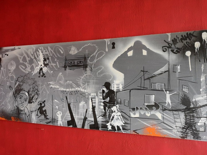 Spuštamo se i nedugo zatim ponovo zabrana za slikanje. Prolazimo kroz još mračnije katakombe nalik tunelima. Začu se glas iz polumraka na lošem engleskom: ”Momak, imaš jednu cigaretu?“ Primetih da ljudi sede na zemlji, naoružani do zuba, istetotovirani i previše sablasni. Nose debele lance oko vrata i neke ogrlice koje bljesnu na tren samo da podsete da je dan. Vratih se korak, dva nazad i dadoh jednom liku trećinu kutije. Pruži mi ruku, bratski, stegnuvši je. Ispod čeličnog pogleda, sa par ožiljaka na licu, prelomi se osmeh. „Kako se zoveš?“- upita me. „Branislav, ti?“ „Edilson“ – odgovori mi. Ovi oko njega skamenjeni gledaju u pod, sedeći u turskom sedu. Ne pomeraju se. „Ovde ti niko ništa ne sme, samo reci na kapiji dole da si upoznao Edilsona!“ “Hoću, hvala ti puno.“ Htedoh da ga pitam još nešto, ali Patrik, vodič, već naredi pokret. Ok, kad ga slušaju oni, slušaću ga i ja. Prolazimo dalje i spuštamo se skoro dobrih sat vremena bez zaustavljanja. Slikamo se gde smemo i nigde ne skrećemo, ni levo, niti desno, samo utabanom stazom nadole, koja kao da nema kraja. Pravimo pauzu u kući nalik montažnoj poslastičarnici gde jedem najbolji kolač od marakuže preliven semenkama istog voća. Najukusniji slatkiš u Brazilu pojedoh upravo ovde, u Rosinji. Topi mi se ustima još uvek, čak i dok ovo pišem. Osmeh starice i nežan pogled ruku koje se tresu, tips i sve već sada podseća na sreću. Bar na jedan njen trenutak. Patrik upozorava da ne smemo da slikamo izlaz, samo enterijer. Još nismo u bezbednoj zoni za selfije i dvoplane. Izlazimo napolje, a vodič iznenada saopštava da se sklonimo i da brzo stanemo u liniju. Prolaze klinci, deca pod oružjem. Munjevito se spuštaju u podnožje bezdana favele, ne okrznuvši nas pogledom. Da li je ovo atrakcija, tiho zastrašivanje ili nenadana akcija? Rekao bih sve u jednom. Starije dve žene u grupi već su u laganoj panici. Oseća se nemir u vazduhu. Ne osećam strah, čudi me, dok se umalo ne sudarismo zbog uskog prolaza ulice. Odzvanjaju cokule po raspaloj vlažnoj kaldrmi od neravnog i klizavog betona. Pratim im pokrete. Znam da sam bezbedan. Ako “opalim fotku,“ momentalno ću biti mrtav. To je to. Sve je na meni. Favelo, tako sam i hteo. Branislave, biraj! Šalim se, naravno, nisam ni pomislio. Malo nadrealna filmska scena, zaista. Veće duge cevi no deca, koje se presijavaju u dnevnoj izmaglici. Ali Rio je to u “fulu.“ Čitali smo o tome, gledali svašta na ovu temu, a sada uživo. Silazimo u podnožje favele, u ulicu ukrašenu muralima, gde vidim ponosnog Če Gevaru sa tompusom, zastavu Brazila, prelepu crnkinju izbušenu mecima. Prefarbani su “ožiljci“ na lepotici. Patrik upozorava da nikako ne slikamo ljude dok silazimo ovim delom. Odjednom, nenadano skrećemo ulevo, a likovi, crnci sa kačketima, crnji da ne mogu biti, odmaraju na mokrim sofama ispred nekih lokala nalik prodavnicama. Oružje drže strogo ispod kanabeta, vidi se iz avaksa. Oslikavaju se duge cevi dok ih zaobilazimo. Ne pomeraju se. Jedan tiho broji metke dok šaržer iz torbice premešta u pištolj. Samo nas prate pogledom i ćute, bar dok ne prođe jednoćelijska povorka u belim, kišnim kabanicama. Molio sam Boga samo da se neko iz omanje grupe ne zaplete, vrlo je strmo, da se ne istripuju bespotrebno. Osećam da im ličimo na šetajuće spermatozoide u pokretu, onako kostimirani u kabanice. Kao da uskoro izlazimo iz same favele. Stajemo pored nekih trošnih kuća sa velikim dvorištima u kojima cveta merkantilizam. Stari televizori, šolje, sanitarije, stotine limenki, mikrotalasne peći, golišave lutke, obuća, odeća, sve je na velikoj gomili, polovno i u lošem stanju. Zastajemo, dok Patrik priča svoj poslednji “čepter“ o Rosinji. Iznenada, izlete iz jedne od kuća nag muškarac, naravno sav istetoviran, u bermudama. Vidim, ima pištolj za pojasom, dok mu kaiš visi i landara, onako raskopčanom. Nešto mu ljutito reče tihim glasom, pominjajući foto, a ja to shvatih ovako: “Nemoj slučajno da je mene ili robu neko slikao, sve ću da ih pobijem!” Vidim na prozoru, lepu, crnu ženu kako izvire i gugla očima, dok nas zgranuto mamurna i raščupana posmatra iz daljine. Pogledah Patrika, nasmejah se i on mi tiho uzvrati. Neverbalna komunikacija šljaka do bola, jer smo još jutros u autobusu on i ja obradili temu filma “Tropa de elite!”. Prekidosmo ih u jutarnjoj, ljubavnoj akciji izgleda, jbg. Naše spontano prisustvo i stajanje ga je izgleda i malo razljutilo. Sasvim razumljivo. Sve je jasno kao dan, nastavljamo dalje. Kako silazimo, napolju se već nadziru automobili, ljudi i spoljni svet. Život iz kojeg ja navodno dolazim. Na kraju izlaznog zida, verovatno kao metafora, stoji veliki mural sa natpisom “Pizza delivery”. Ko još donosi picu ovde? Pa, ima stalnog posla i za mene, pomislih u sebi. Kada budem puk’o u životu, a ni to nije daleko, hitam u Rio da prodajem kišne kabanice, kišobrane i raznosim pice po favelama.