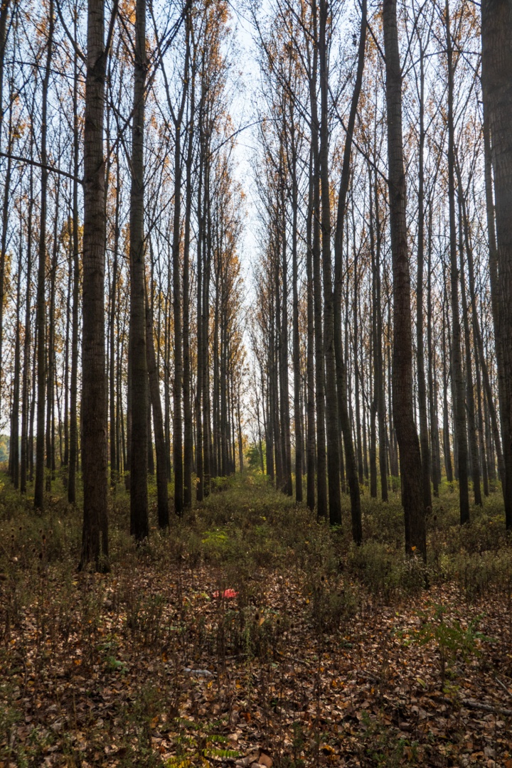 For this exhibit, for these 7 wall sections of marvelous red brick between equally marvellous arched French doors, I had the inspiration of combining and uniting the vertical strengths of trees with those of columns. To ponder and even meditate about the symbolism between natural and man-made architecture. They certainly have one thing strongly in common: They Stand Tall.