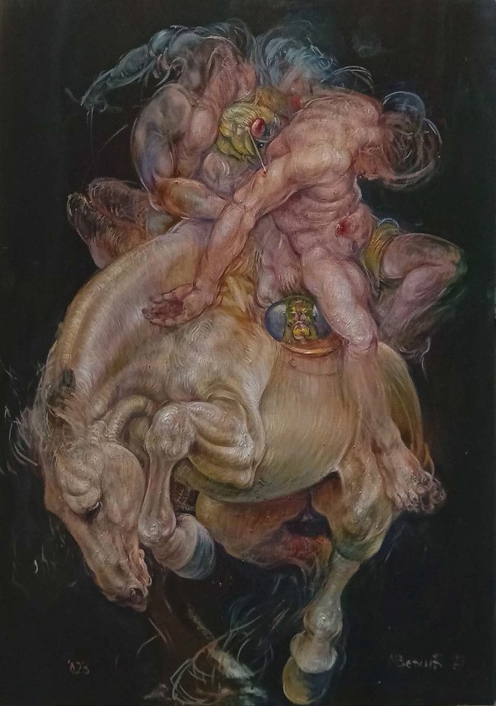 Šta je potrebno za umetnikovu inspiraciju u stvaranju jedne priče? Vrisak tvojih konja vranih je spona nebeskog i duhovnog. Koliko se tvoja lična priča prenosi na platno?