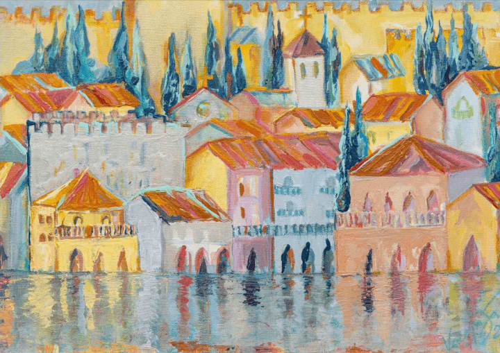 Nakon tog iskoraka, bilo je svih boja, i svetlog i tamnog među svim nijansama plave – boje nade. Iskoračila sam više puta od tada, bila u raznim životnim ulogama. Padala, podizala se, napuštala neke uloge, učila da praštam, molim i volim, da volim sebe. Kao građevinac po struci, nimalo slučajno, gradila sam svoj svet, odnose, usvajala nova znanja i voljenja različitosti među bićima, načinima, osobenostima, talentima, o svetu u sebi i van mene. Pronašla sam svoje pismo, boje, svoj alat, način komunikacije. Sve moje poruke i nadanja su u slikama poslate u svet, a opet su tu, blizu mene, da me podsete gde stadoh i bodre me da produžim.