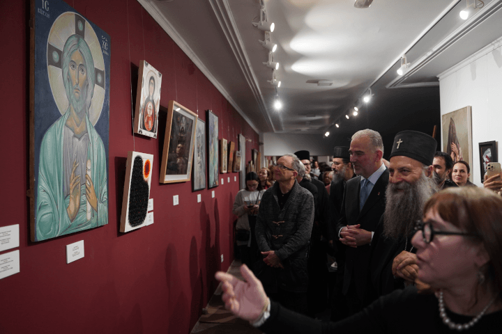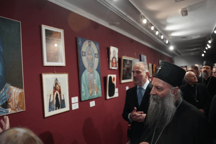 Изложбу је свечано отворио надахнутим беседом која је обухватила главну нит и поенту света у слици и слици света као заједнице у љубави – Његова Светост Патријарх српски г. Порфирије.