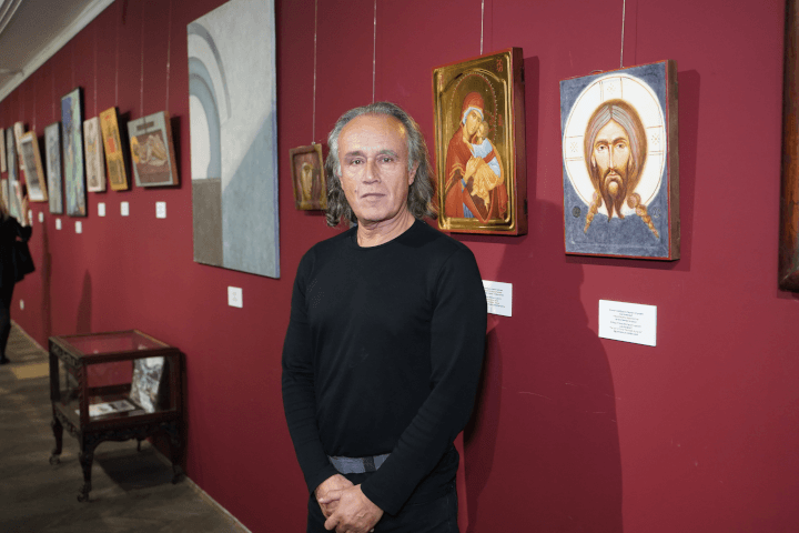 Иконе сликане јајчаном темпером или акрилом на дасци, платну и камену изложили су Епископ моравички Тихон Ракићевић (Студија лика анђела и Свети Јован Претеча), Епископ новобрдски Иларион Лупуловић (Икона Пресвете Богородице Умиљење), Епископ новобрдски Иларион Лупуловић и Лука Новаковић (Нерукотворени образ Христов), Монахиња Јелена Благојевић и Монахиња Нина Шарчевић (Свети Василије Острошки), Владимир Бата Кидишевић (Свети Јован Крститељ и Исус Христос Старац Дана), Владимир Карановић (Страдање Светог Зосима Туманског), Тодор Митровић (Излазак из Египта), Светлана Cедлан (Свети оци Првог васељенског сабора), Јелена Хинић (Свети Севастијан Џексонски), Ива Таталовић (Плаштаница), Горан Јанићијевић (Хранитељ Призренски и Благовештење), Бобан Вељковић (Победа Православља), Бојан Бановић (Исус Христос, Мати Божја са Христом и Христос Добри пастир), Јелена Јашовић (Преображење). Икону осликану техником енкаустике, пигменима помешаним са растопљеним воском у топлом стању извео је Тодор Митровић (Богородица са Христом и Излазак из Египта).
