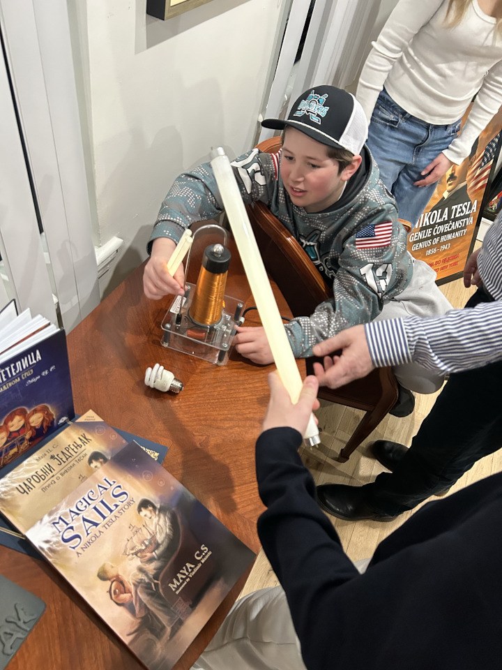 Saradnja sa Tesla Science Foundation USA donela mi je neke zanimljive trenutke u svetu inspiracije u vezi sa novom knjigom „Teslina letelica — Bajka o slomljenom srcu (i Da Vinčijevoj tajni)”. Tokom istraživačkog rada, imala sam priliku da sarađujem sa osnivačem Fondacije Nikolom Lončarom i njegovom suprugom Morin, ali i da posmatram njihovo druženje sa unucima, način na koji im prenose znanje. Dok je Nikola izvodio eksperimente sa svojim unukom Ovenom, strpljivo objašnjavajući Teslin kalem i bežične sijalice, podsetio me je na vreme koje sam provodila sa svojim dekom. I mi smo učili kroz razgovor, kroz priče, kroz radoznalost. Tada sam shvatila da Teslino nasleđe nije samo u arhivama i patentima, ono živi u prenosu znanja sa generacije na generaciju.