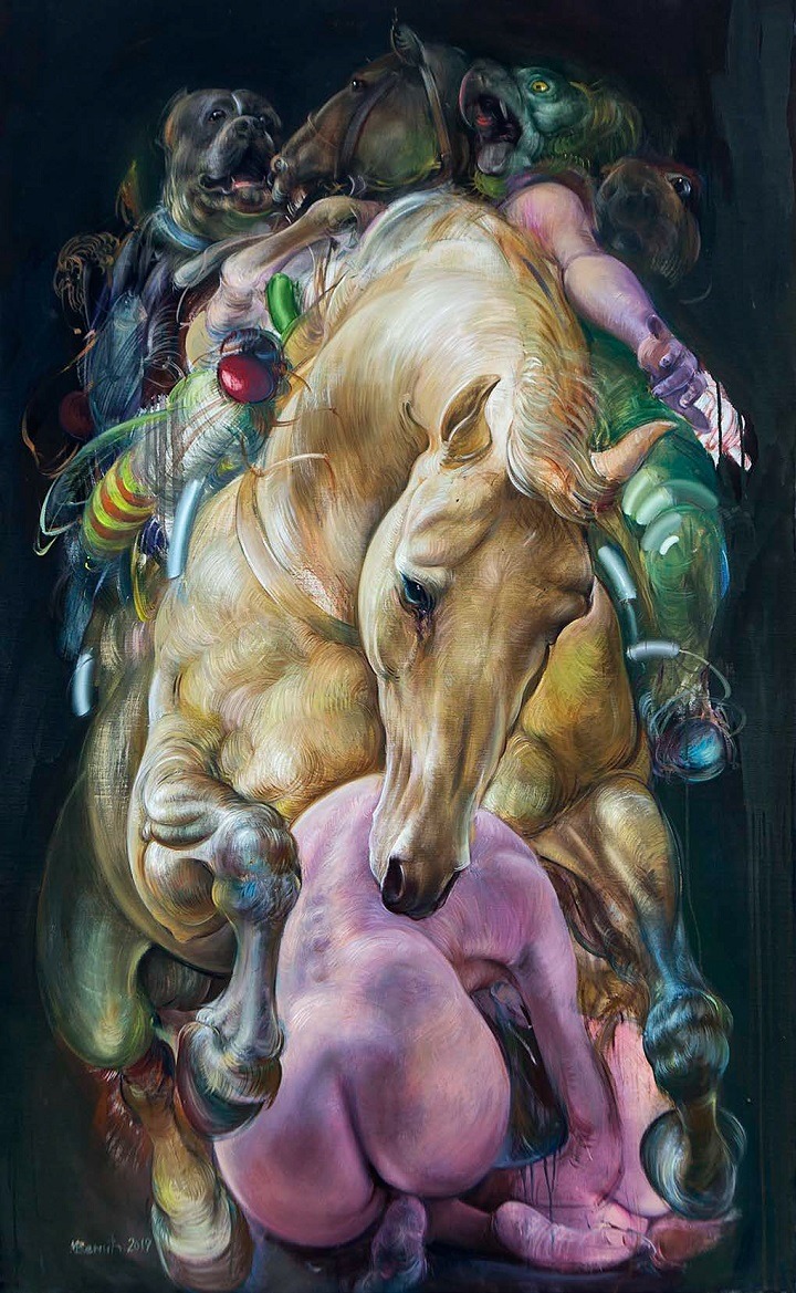 Nijesam želio da me išta mimoiđe u životu, jer sve što se nagomilava u meni i mojim slikama, pomoći će mi da se vratim na ognjište svoga oca. Vrisak omiljenog vranca je spona oba zvona, i duhovnog i nebeskog. On i sad nosi moju dušu na svojim znojavim leđima padinama Sinjavine, crn i ubitačan. I tako, taj „vrisak primarni“ je bio okidač za život i umjetnost koja se razvijala u meni i traje. To je ritualni ulazak u jedan drugi i drugačiji svijet. Taj svoj vrisak sam podario tom biću… konju. Konj je htonsko i demonsko, noćno i dnevno biće, solarno i božansko. Ne tvrdim da je to životinja. Mojim slikama sa ovim bićem želim dati crtu bezvremenosti, a ne opštosti. Ne biti stereotipan nego arhetipan. To je zadatak, da vrište moji konji slomljenih vilica.