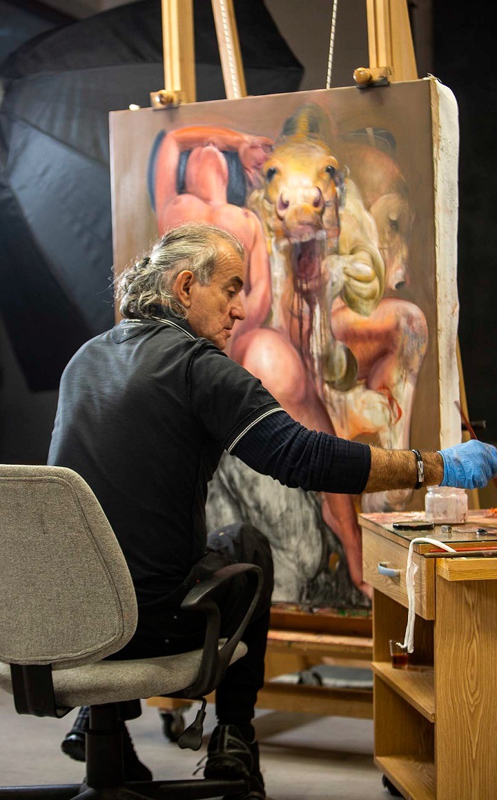 Nezaobilazna avantura za svakog umjetnika je akt. Nije to samo puka erotska senzacija. To je kompleksna tema, samim tim i teška. Malo je danas umjetnika koji se bave tom temom, a da nije pomalo sanzacionalistička. Imao sam izložbu akta u Požegi poodavno, takođe sam nekoliko radova izlagao u Fluhliu kod Lucerna, gdje sam vodio razgovor sa poznatom istoričarkom umjetnosti, koja me je pitala zašto slikam akt koji je brutalno ogoljen. Ja sam odgovorio da akt čak tretiram kao ekološku temu, lišenu jeftinih krpica i banalnosti. Akt može biti potresan koliko Sutinov ili Rembrantov „Odrani bik“. I Sezanova predstava jabuka posjeduje dramatiku, a kamoli akt. Pikaso je uz neke svoje aktove dodavao satire i bikove da bi došao do dramatičnije predstave. Akt može da bude i sladunjav poput razvodnjene limunade. Moja malenkost tretira akt u odnosu prema animalnoj snazi, razdrobljen između Erosa i Tanatosa.