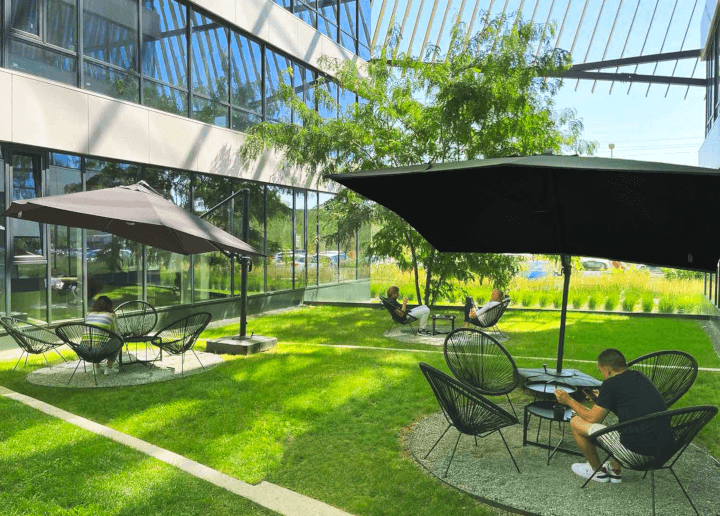 Radimo u kompleksu koji je po meri ljudi i koji je stecište dobrih i uspešnih kompanija. U poslovnom svetu je važno imati i dobar komšiluk. Kod nas su kućni ljubimci dobrodošli i svi im se radujemo dok se vrzmaju u lobiju ili bašti. U maju smo organizovali „Dan krznene zabave“ kroz maženje i igru sa mini šnaucerima, jer znamo da takva aktivnost smanjuje stres i povećava produktivnost. Pravimo nove planove i to naši klijenti znaju i očekuju.